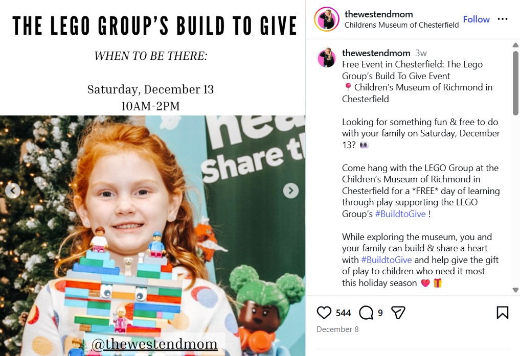 After the LEGO Group began construction of their only US-based factory, the global toy brand needed to demonstrate its community to the central Virginia community. Bringing the brand’s focus on “learning through play” to life through community-based events and partnerships with respected area nonprofit organizations has generated millions of impressions within the target central Virginia market, landing on the front page of the Richmond Times-Dispatch 5 times in under 2 years.