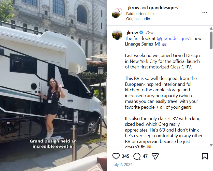 When launching the new Lineage Class-C motorhome, Grand Design RV (a Winnebago Industries brand) needed an outside-the-box way of finding new potential customers. An multi-channel campaign utilizing a national sweepstakes, influencer content and an RV takeover of Bryant Park in New York City grabbed headlines and drove thousands of potential customers to learn more about the new RV model.